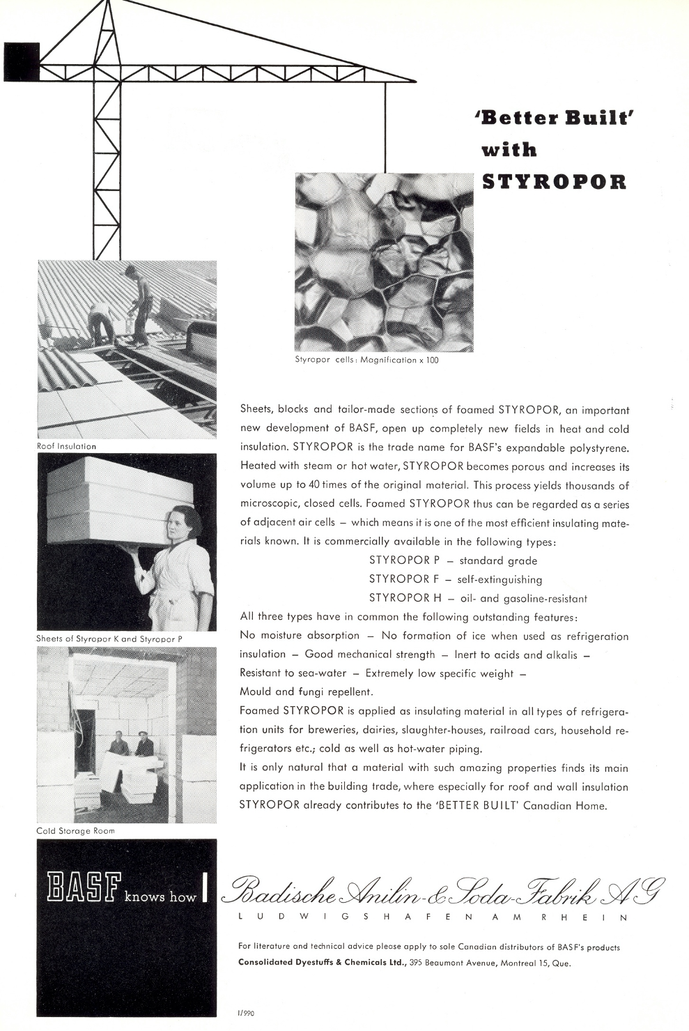Ein glücklicher Zufall: Wie ein Flaschengeist entstieg 1949 ein fester weißer Schaum einer Schuhcremedose. Es war das Material, aus dem Fritz Stastny einen Jahrhundertwerkstoff entwickelte: Styropor®. Im Stammwerk Ludwigshafen der Badischen Anilin- und Sodafabrik, der heutigen BASF SE, war Stastny auf der Suche nach einer effektiven Kabelisolierung und dabei war ihm eine Erfindung gelungen, deren Erfolgsaussicht er zunächst noch nicht einschätzen konnte. Er ahnte jedoch bereits, dass es sich um eine bahnbrechende Entdeckung handelte. Anderthalb Monate zuvor hatte er Petroläther als Treibmittel zu einer Lösung von Polystyrol in Monostyrol gegeben und dabei Benzoylperoxid als Katalysator genutzt. Den Versuch führte er in einer Schuhcremedose durch, da diese sich gasdicht schließen ließ. Er hielt nach dem Öffnen der Dose in seinem Laborjournal fest: „Klare Lösung, bei Raumtemperatur bis 1.12.1949 gelagert. Durchsichtige, harte Scheibe entnommen.“ Das Muster sollte nun bis zum Abend in der Dose im Trockenschrank lagern. Der Forscher vergaß es jedoch dort und fand am nächsten Morgen anstelle der Scheibe einen starren Schaumstrang vor, der den losen Dosendeckel um 25 Zentimeter angehoben hatte. Styropor® war geboren.